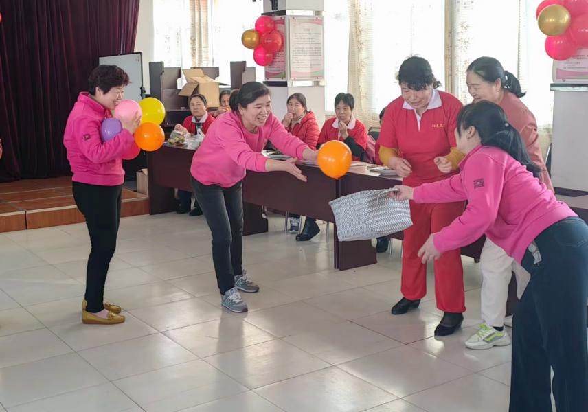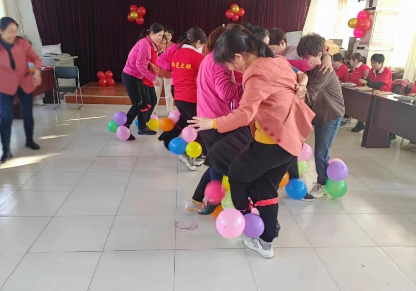 ? ? ? ?隨后進(jìn)行聯(lián)歡活動(dòng),大姐們載歌載舞慶祝自己的節(jié)日。趣味小游戲有“踩氣球”、“疊報(bào)紙”、“拋繡球”、“雙龍戲珠”等項(xiàng)目。在游戲中,參賽選手充分發(fā)揚(yáng)團(tuán)結(jié)協(xié)作、積極向上的精神,全身心投入到比賽中。整個(gè)聯(lián)歡過程緊張激烈又趣味橫生,現(xiàn)場(chǎng)熱鬧非凡,氣氛活躍。