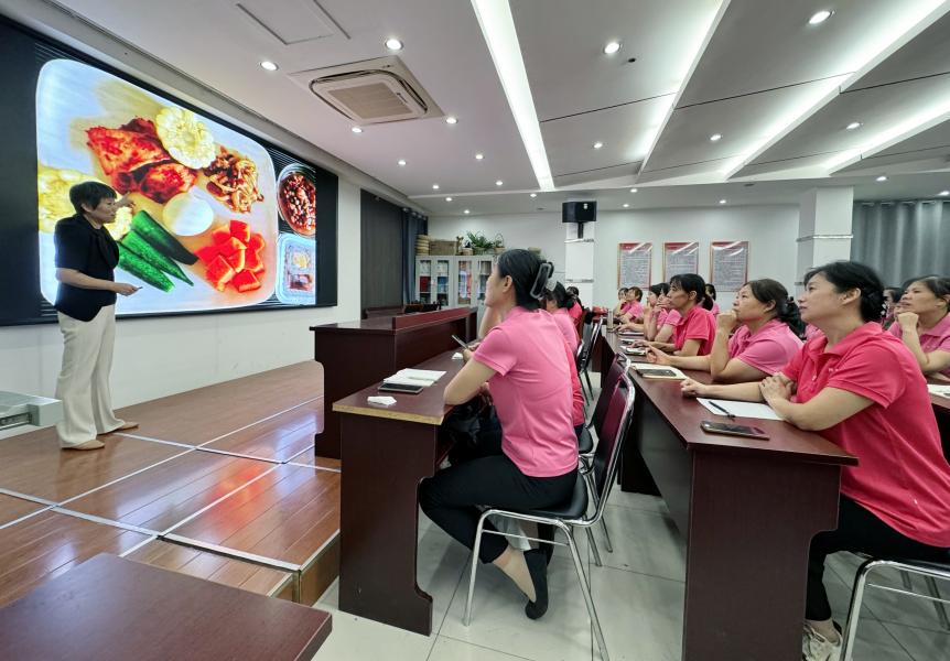 為增強家政從業(yè)人員營養(yǎng)膳食的理念和知識,提升職業(yè)化水平,為用戶提供更專業(yè)、更健康的服務。9月11日德州陽光大姐特邀國際注冊營養(yǎng)師、德州市營養(yǎng)協(xié)會鄭會長開展 “引領‘食’尚? 健康賦能”活動。公司100余名家政從業(yè)人員參加此次活動。