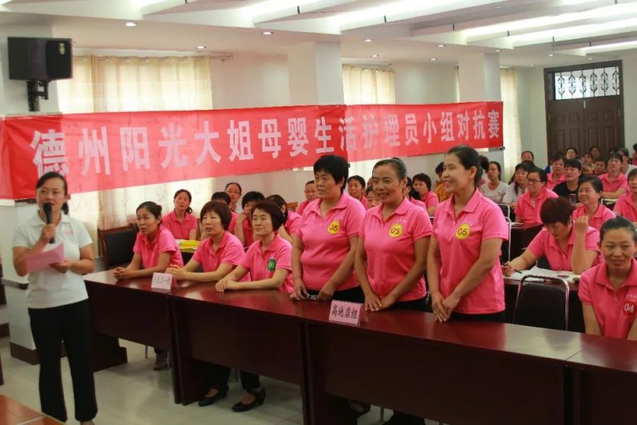 為激發(fā)家庭服務(wù)從業(yè)人員學(xué)技能、提素質(zhì)的熱情,展現(xiàn)家庭服務(wù)員的風(fēng)采,進(jìn)一步提升家庭服務(wù)的專業(yè)化、職業(yè)化水平,德州陽(yáng)光大姐于7月份月嫂例會(huì)上舉行了2018十周年慶典系列活動(dòng)——母嬰生活護(hù)理員小組對(duì)抗賽。