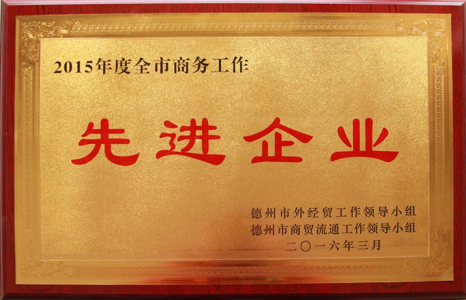 【德州陽(yáng)光大姐喜訊】公司榮獲“2015年度全市商務(wù)工作先進(jìn)單位”稱(chēng)號(hào)