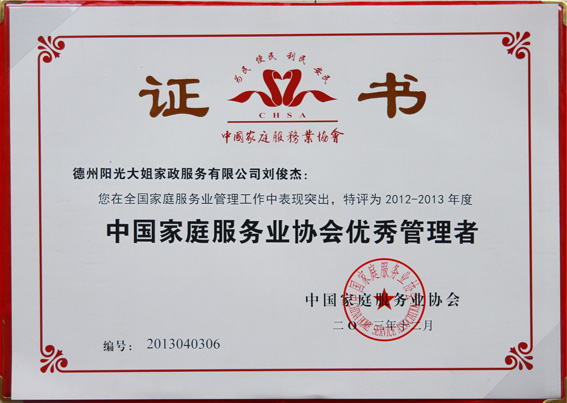 熱烈祝賀劉經(jīng)理榮獲中家協(xié)優(yōu)秀管理者稱號(hào)