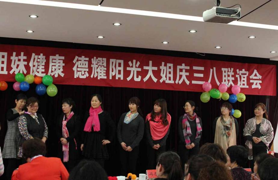 3月8日下午,陽光 大姐“情系姐妹健康 德耀陽光大姐”慶三八聯(lián)誼會(huì)在公司 三樓多媒體教室舉行。市婦聯(lián)副主席王萬英、發(fā)展部部長(zhǎng)何海燕出席聯(lián)誼會(huì)。