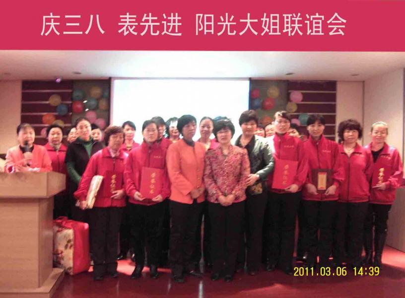 ? 3月6日下午,陽(yáng)光大姐家政服務(wù)公司舉行“慶三八 表先進(jìn) 陽(yáng)光大姐聯(lián)誼會(huì)”,150多名服務(wù)員回公司共慶自己的節(jié)日。會(huì)上表彰了2010年度在家政服務(wù)行業(yè)中作出杰出工作的優(yōu)秀員工,她們?cè)诼?lián)歡會(huì)上載歌載舞,歡度自己的節(jié)日,積極展示家政服務(wù)人員積極向上、多才多藝的另一面。