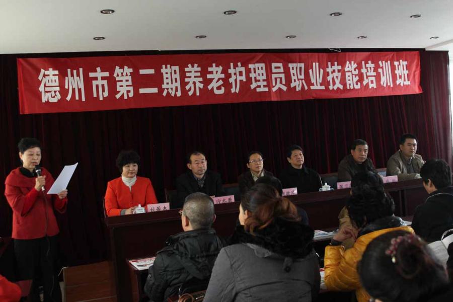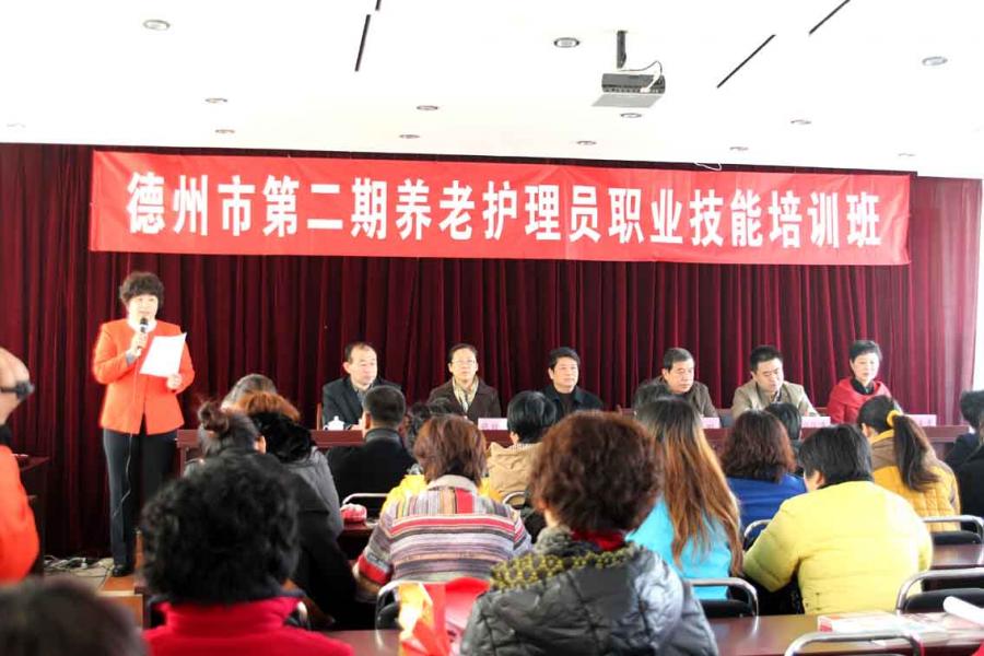 ? ? 為推動(dòng)全市養(yǎng)老服務(wù)業(yè)快速發(fā)展,建設(shè)一支專(zhuān)業(yè)化、職業(yè)化的養(yǎng)老服務(wù)員隊(duì)伍,由市老齡辦、市人社局舉辦,德州陽(yáng)光大姐家政職業(yè)培訓(xùn)學(xué)校承辦的全市第二期初級(jí)養(yǎng)老護(hù)理員培訓(xùn)班于11月8日在我學(xué)校開(kāi)班。市老齡辦主任張衛(wèi)東、副主任張效清,市就業(yè)辦主任徐剛等領(lǐng)導(dǎo)出席了開(kāi)班儀式。張衛(wèi)東主任、劉俊杰經(jīng)理、老師代表、學(xué)員代表分別作了講話。