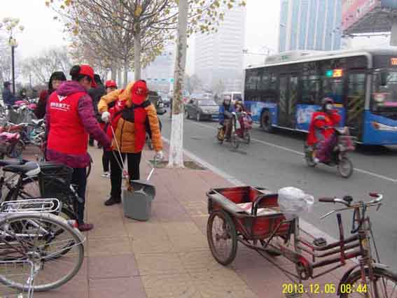 ? ? 2013年12月5日,第28個(gè)世界志愿者日,為響應(yīng)德州市義工協(xié)會(huì)號(hào)召,我公司70余名義工自愿組織參與了本次義工活動(dòng),進(jìn)行了交通協(xié)管和環(huán)衛(wèi)幫扶,在市區(qū)內(nèi)人流集中的各主要路口進(jìn)行交通疏導(dǎo),違章提醒;對(duì)市區(qū)四條主要干道上的環(huán)衛(wèi)工人進(jìn)行環(huán)衛(wèi)幫扶,清理整治主次干道、沿街垃圾箱等區(qū)域的環(huán)境衛(wèi)生。公司領(lǐng)導(dǎo)為義工大姐們準(zhǔn)備了口罩、手套,工作人員與大姐們一同參與了義工活動(dòng)。